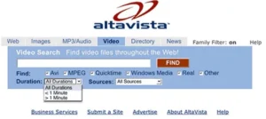 Le nom “AltaVista” signifie “Vue haute” en espagnol, et le moteur de recherche a atteint un volume impressionnant de 13 millions de requêtes par jour. Les utilisateurs pouvaient rechercher des sites web, mais aussi des images, des fichiers et des vidéos.