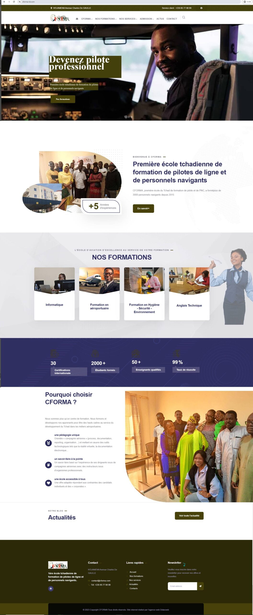 Avant la collaboration avec notre agence Web en Afrique, le site web de CFORMA Tchad ne reflétait pas pleinement son impact et sa portée. L’objectif était de moderniser leur présence en ligne pour mieux communiquer leur mission et leurs services. Nous avons entrepris une refonte complète du site vitrine, mettant l’accent sur l’accessibilité, l’engagement utilisateur et la mise en avant de leurs programmes de formation.